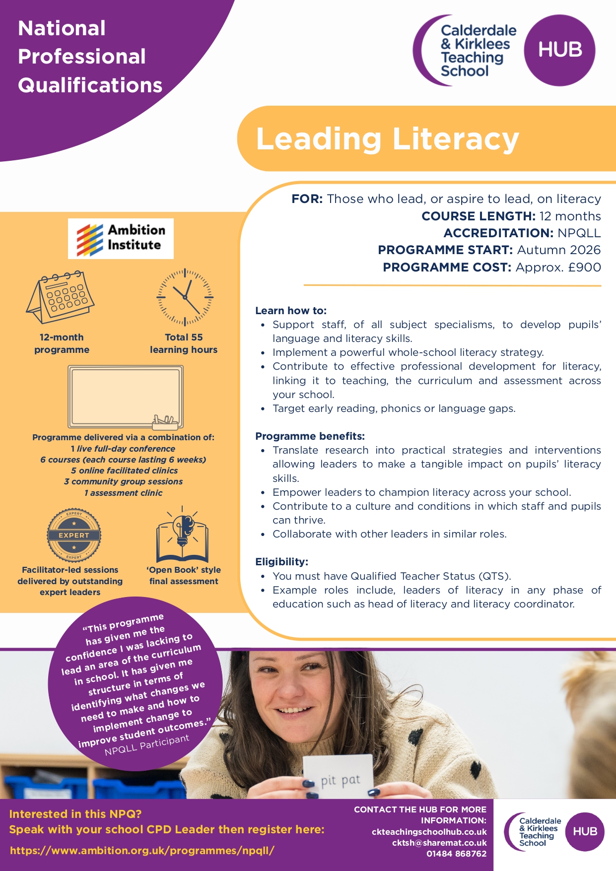 Click on the image opposite to download a copy of our programme guide or contact us for more information or guidance about this NPQ programme.
