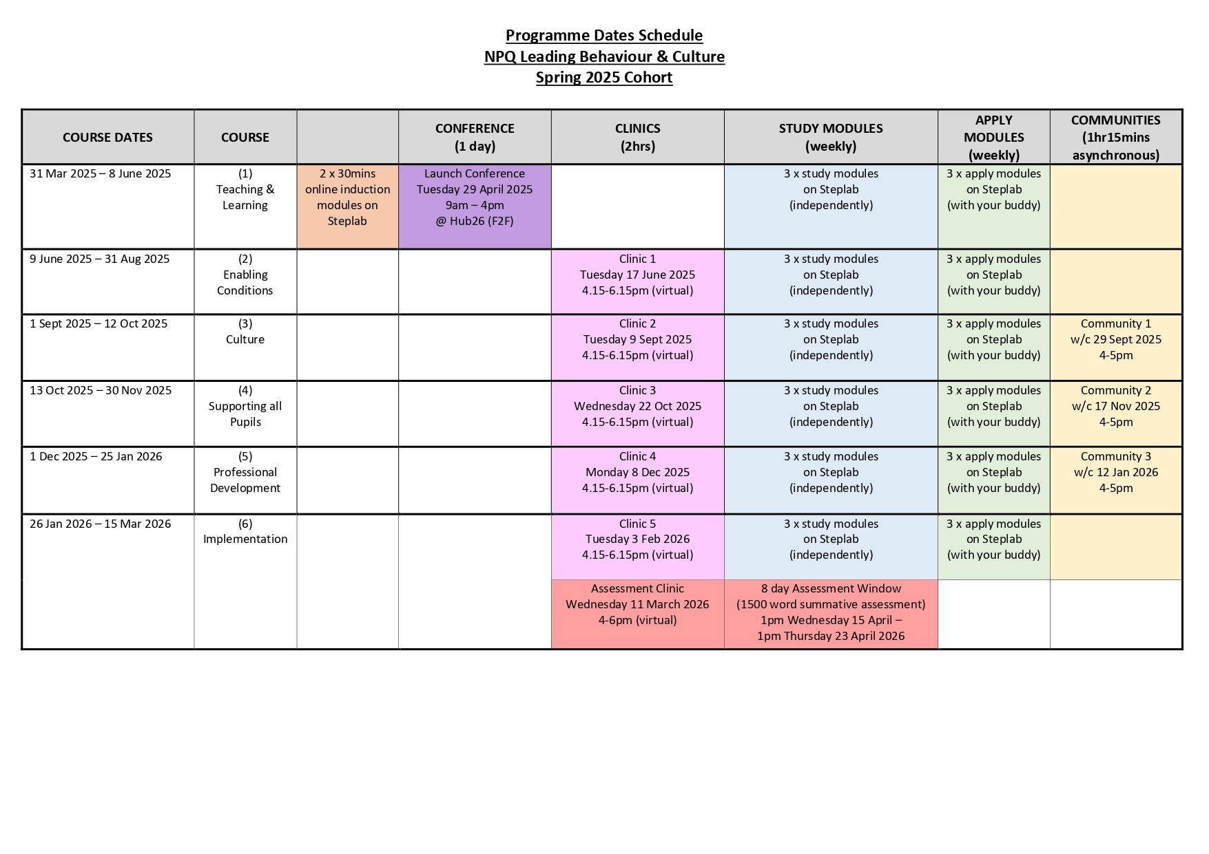 • Participant workbook: log in to your My Ambition to download a copy of the workbook from your Steplab. You will find it under 'library - NPQ - Participant Materials - NPQ Leading Behaviour & Culture - NPQLBC April 25 Key Programme Resources - 1: conferences, clinics and communities workbooks - start reading - assessment clinic'