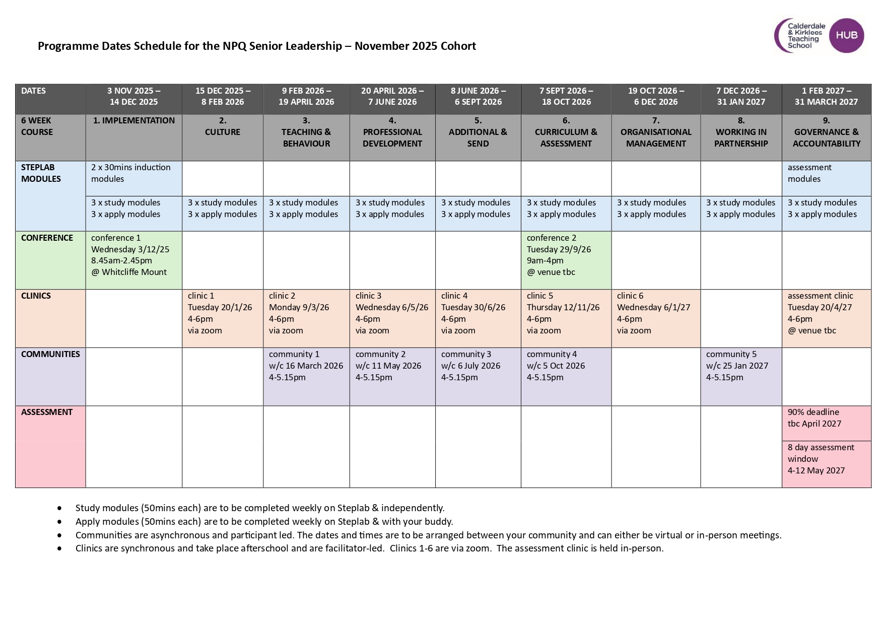 • Participant workbook: log in to your My Ambition to download a copy of the workbook from your Steplab. You will find it under 'library - NPQ - Participant Materials - NPQ Senior Leadership - NPQSL Nov 25 Key Programme Resources - 1: conferences, clinics and communities workbooks - start reading - conference 1'
