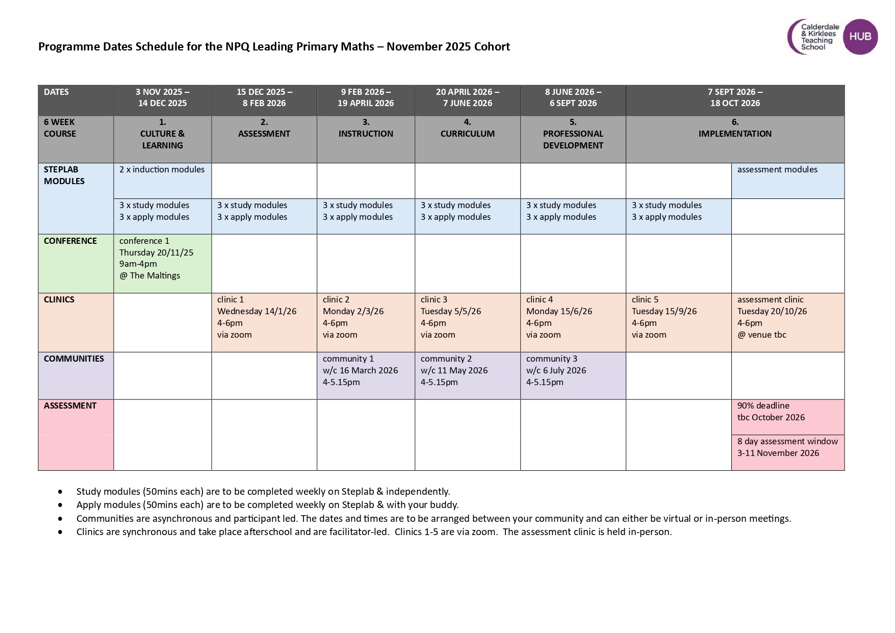 • Participant workbook: log in to your My Ambition to download a copy of the workbook from your Steplab. You will find it under 'library - NPQ - Participant Materials - NPQ Leading Primary Maths - NPQLPM Nov 25 Key Programme Resources - 1: conferences, clinics and communities workbooks - start reading - conference 1'